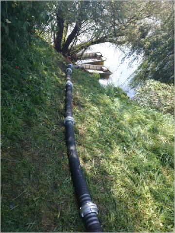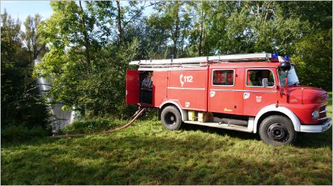 Die am Tag zuvor eingeleiteten präventiven Sauerstoffanreicherungsmaßnahmen an einem gemeindeeigenen Anglersee in Gädheim wurden fortgesetzt, um den Sauerstoffgehalt weiter über den Mindestsollwert zu steigern. Während die Kameraden aus Gädheim dieses Mal Wasser aus der Bucht einleiteten, sorgte die Feuerwehr Ottendorf wieder für das Umwälzen des Seewassers.