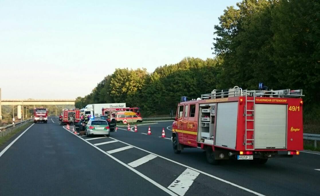 Am frühen Morgen wurden die Feuerwehren Gädheim, Schonungen, Weyer und Ottendorf zu einem Verkehrsunfall auf der B26 an der Kreuzung zur B303 gerufen, wo ein PKW mit einem von der B303 kommenden LKW kollidiert war. Die verletzte Fahrerin des PKW konnte glücklicherweise zügig aus ihrem Fahrzeug befreit und in ein Krankenhaus gebracht werden. Der Lkw-Fahrer blieb unverletzt. Die B26 war für ca. eine Stunde voll gesperrt.