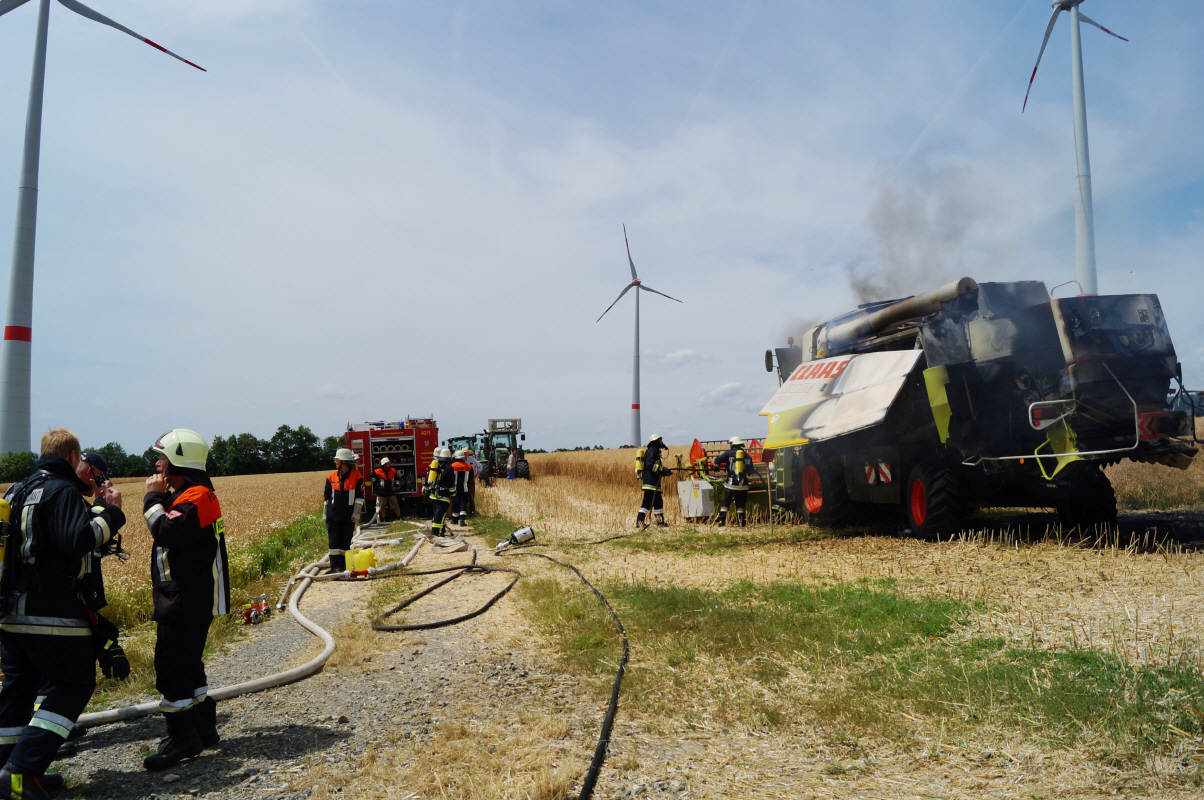 Am Montagnachmittag, 11. Juli 2016 um 13:22 Uhr, wurde die Feuerwehr Ottendorf mit dem wasserführenden LF 8/6 zu einem Mähdrescherbrand nahe Gädheim nachalarmiert. Mit im Einsatz waren die Kameraden aus Gädheim, Schonungen, Gochsheim, Forst und Weyer sowie der Rettungsdienst. Der Brand konnte mit dem Wasser aus den Fahrzeugtanks schnell unter Kontrolle gebracht werden, zur Absicherung stand ein mit etwa 13.000 Litern Wasser gefüllter Gülletank eines Gädheimer Landwirtes bereit, außerdem wurde noch eine etwa 500 Meter lange Schlauchleitung zur Wasserversorgung gelegt.