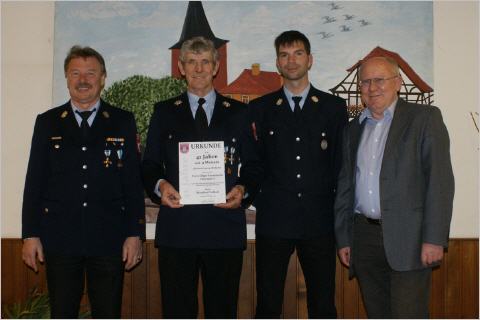 Der scheidende Bürgermeister Egon Eck bedankte sich für die gute Zusammenarbeit der Wehr mit der Gemeinde in seiner Amtszeit und lobte das Engagement in Ausbildung und Einsatz. Kreisbrandmeister Lothar Ulmann schloss sich dem an und betonte noch die Wichtigkeit der konsequenten Nachwuchswerbung.