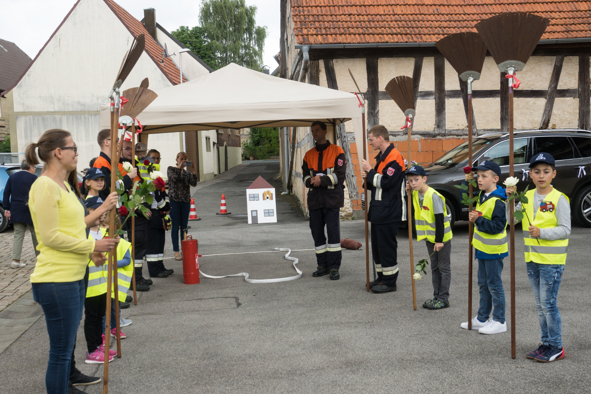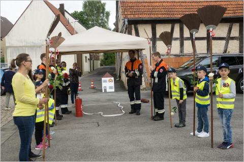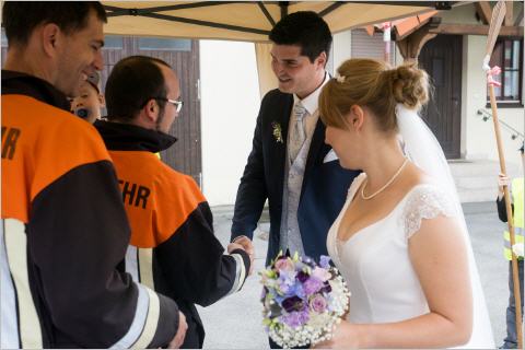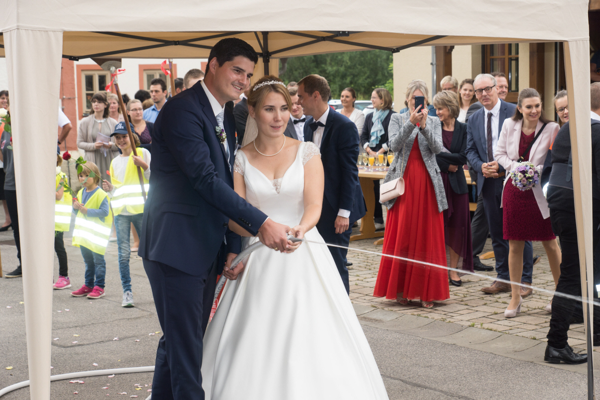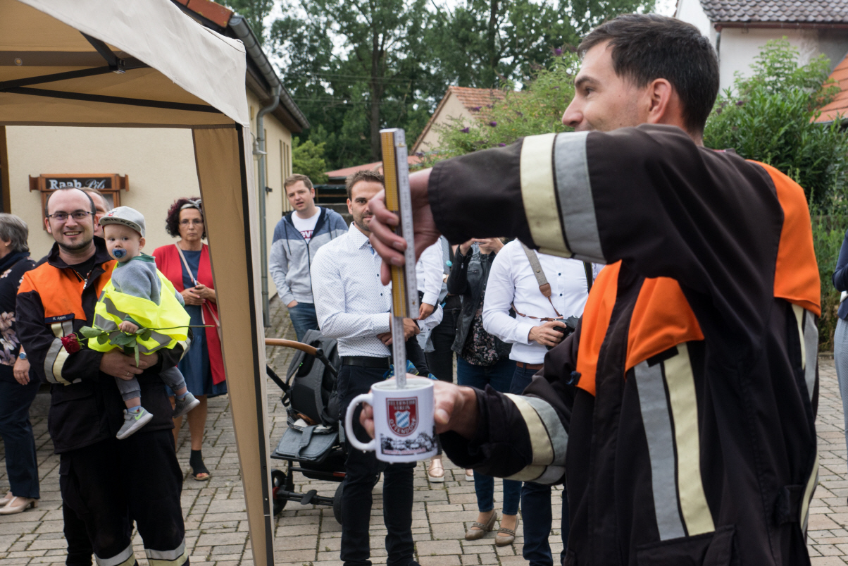 Am 13. Juli machten sich aktive Wehr, Feuerwehrverein Ottendorf und die Kinderfeuerwehr auf nach Römershofen, um unsere Kameraden Lena und Simon Schuhmann nach ihrer Trauung vor der Kirche zu empfangen. Neben dem traditionellen Feuerpatschen-Spalier durfte natürlich auch das Zielspritzen mit der Kübelspritze nicht fehlen!
